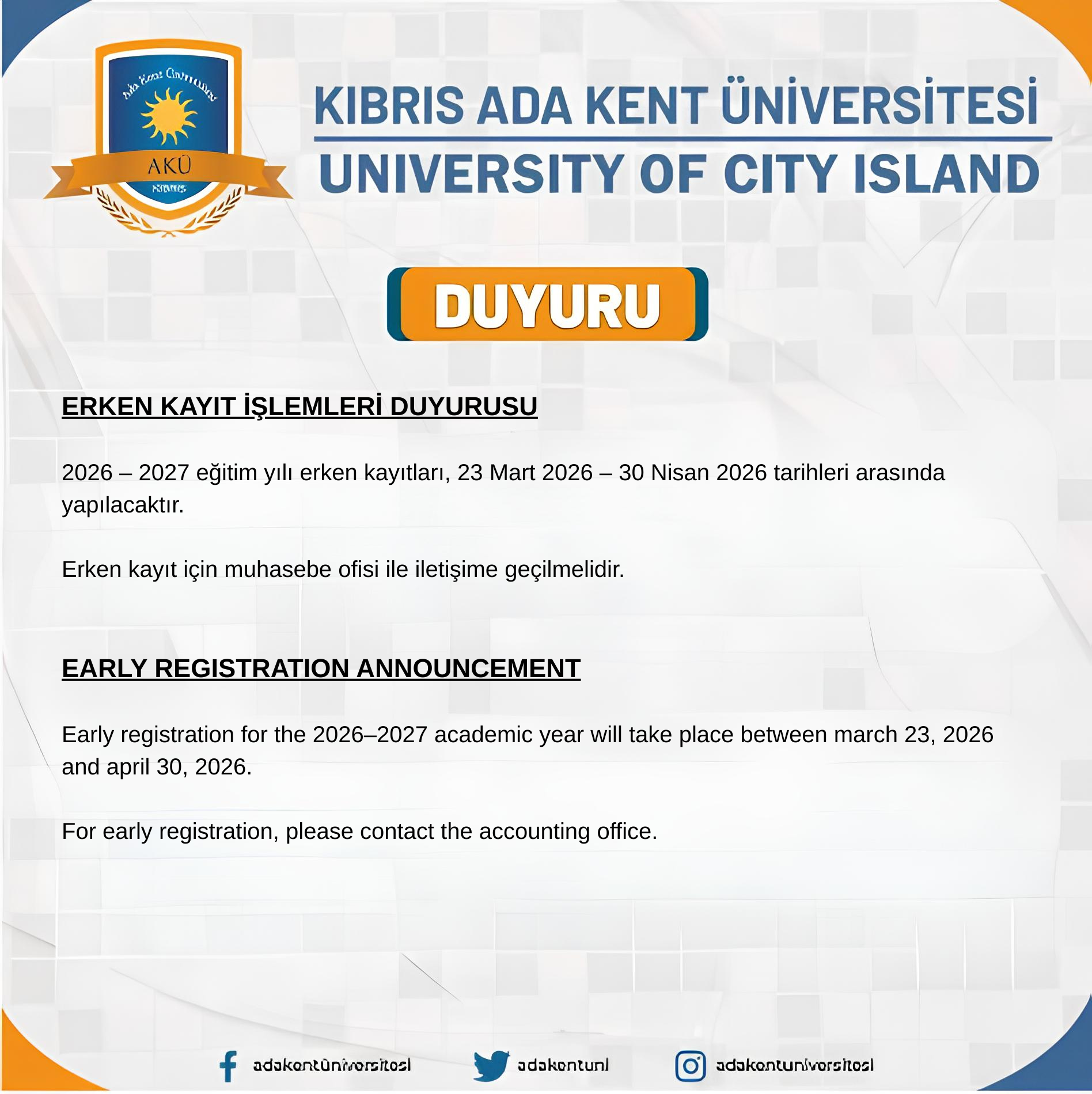 2025 - 2026 Akademik yılı kayıtlarımız başlamıştır.